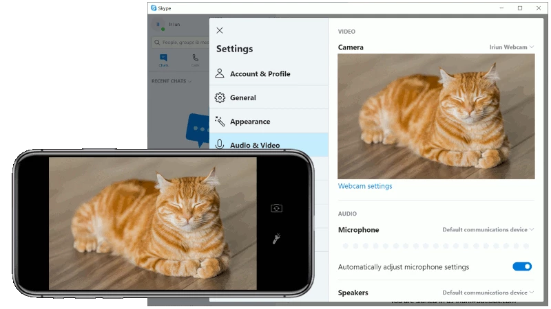 Iriun Webcam은 온라인 회의, 스트리밍 또는 녹화 과정을 관리하고 스마트폰을 무선 웹캠으로 전환해 주는 크로스 플랫폼 애플리케이션입니다. 웹캠을 별도로 구매할 필요 없이, 가벼운 도구를 기기에 설치하고 최대 4K 고해상도의 향상된 화질을 경험해 보세요.